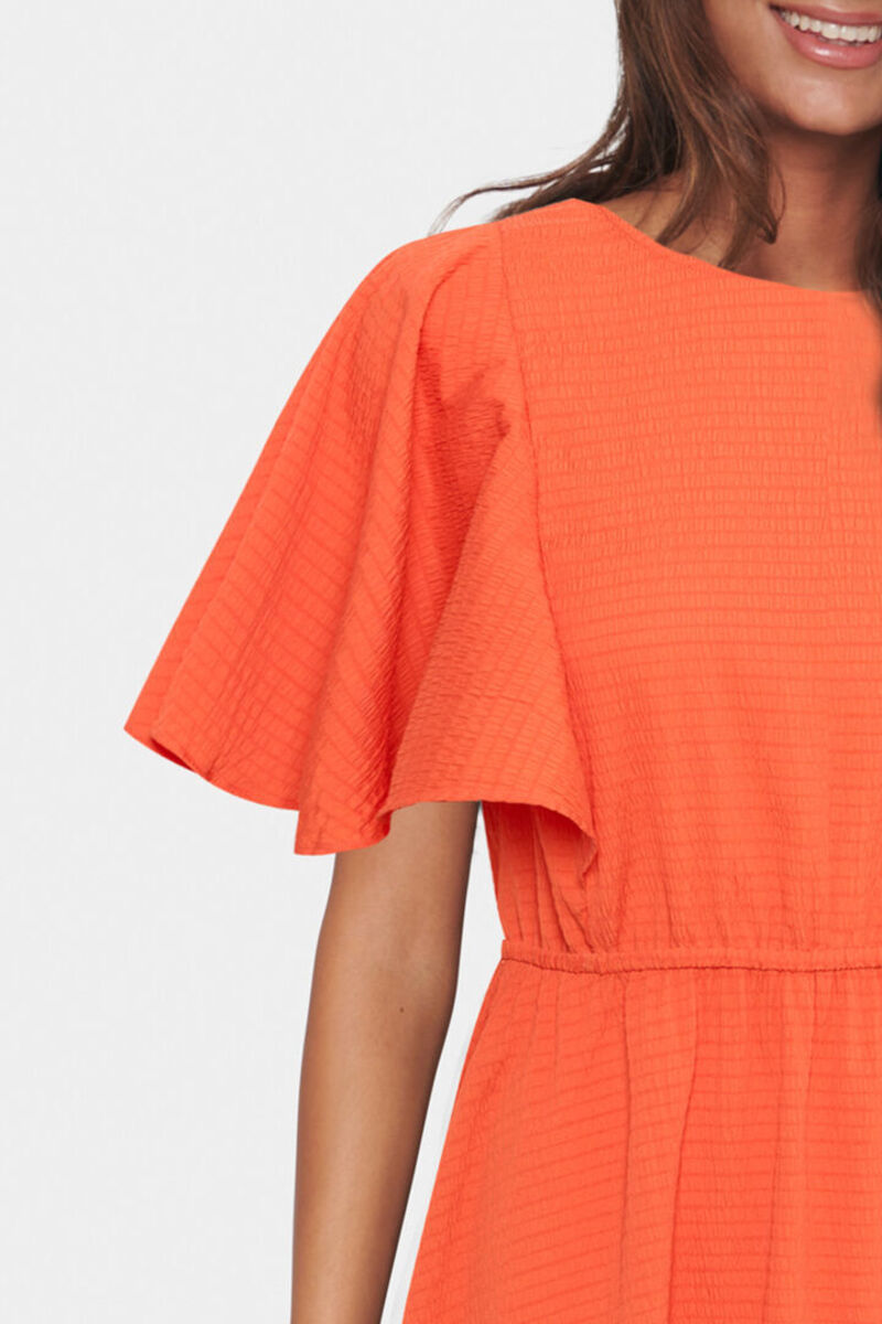 A pop of colour for Spring/Summer, the gorgeous orange Druna dress is a regular fit with short flared sleeves, is nipped in at the waist and finishes just above the knee 100% Polyester